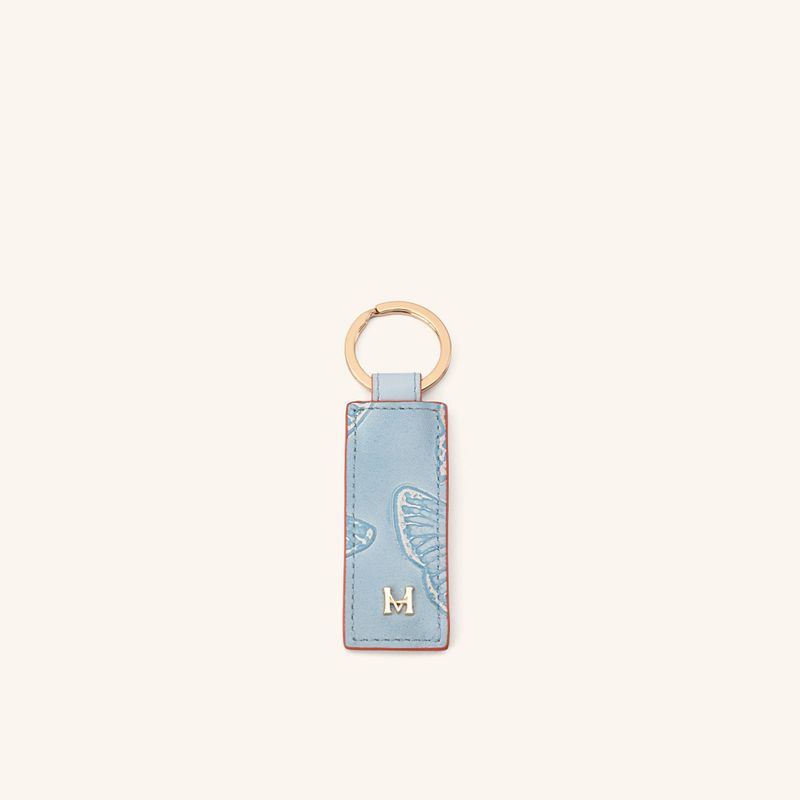 Este accesorio en cuero vacuno destaca por su tonalidad Paraíso, aportando un aire fresco y distintivo a sus objetos personales. Su diseño sencillo y funcional permite organizar las llaves con facilidad, mientras que el mosquetón metálico asegura un agarre firme y práctico para el uso diario.
