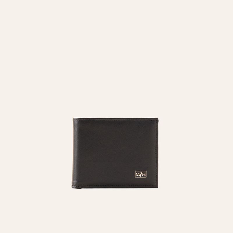 Esta billetera de cuero texturizado en tono negro etna ofrece una solución funcional para la organización diaria. Su diseño sin cierre facilita el acceso rápido a cinco compartimientos para tarjetas, un visor para documentos de identidad y una división dedicada para billetes.
