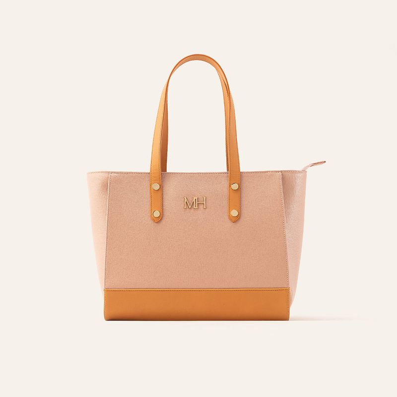 Este bolso de mano en cuero destaca por su tono rosado capri y una estructura funcional con cierre de cremallera para resguardar sus pertenencias. Su diseño incluye el herraje MH y detalles metálicos que aportan un detalle elegante y contemporáneo, ideal para organizar elementos esenciales en entornos profesionales o eventos sociales.