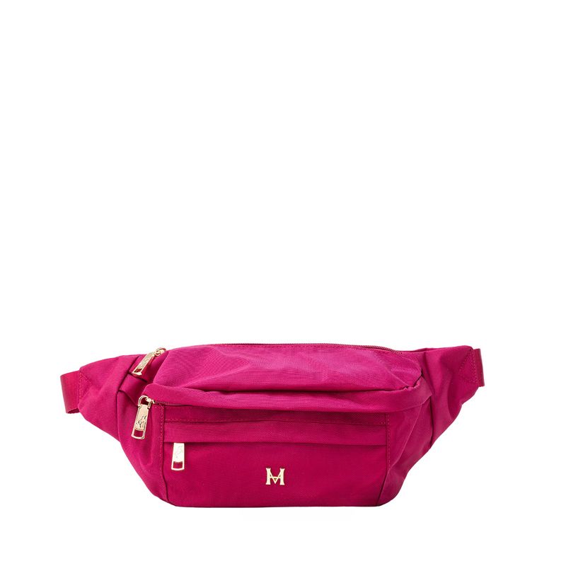 Este canguro en lona de poliéster y nailon ofrece una estructura liviana y resistente para el movimiento urbano. Su tono burgundy aporta un matiz distinguido que se adapta a diversos estilos, mientras que el cierre de cremallera y los herrajes en zamac negro níquel aseguran la protección de los elementos esenciales con un acabado sobrio.