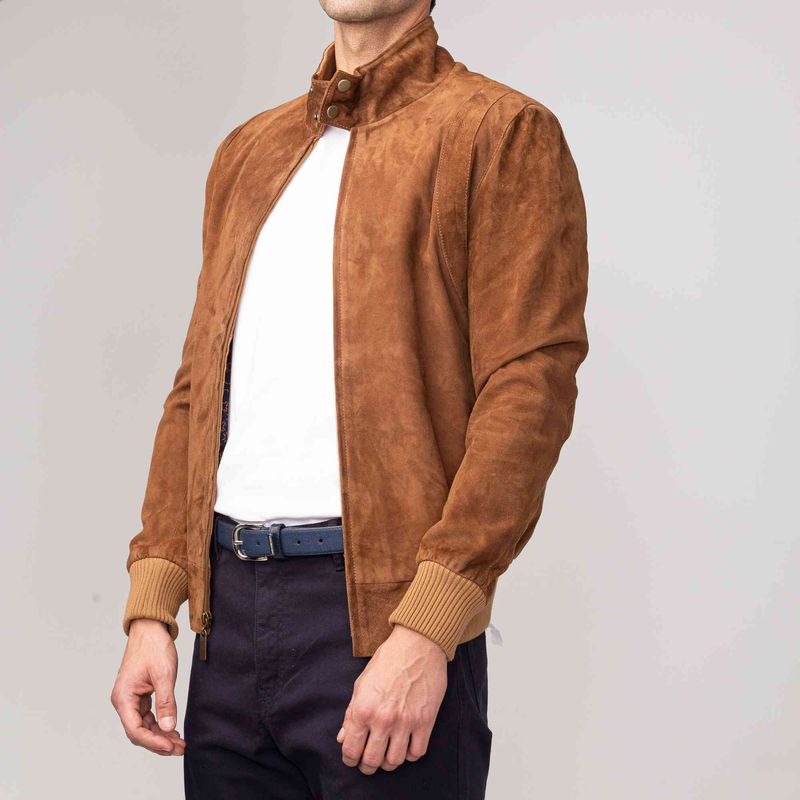 Esta chaqueta de gamuza en tono camel ofrece una textura suave y una estructura ligera ideal para el uso cotidiano. Su diseño funcional incluye un cierre de cremallera frontal y dos bolsillos externos de fácil acceso, proporcionando practicidad y un ajuste cómodo durante todo el d!a.