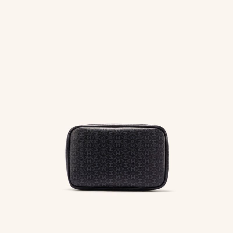 Este estuche en lona sintética texturizada ofrece una solución ligera para organizar cables y accesorios tecnológicos. Su diseño en tono ébano presenta un patrón de ondas entrelazadas que resguarda el logo de la firma, complementado con detalles en cuero vacuno liso que aportan resistencia al uso diario.