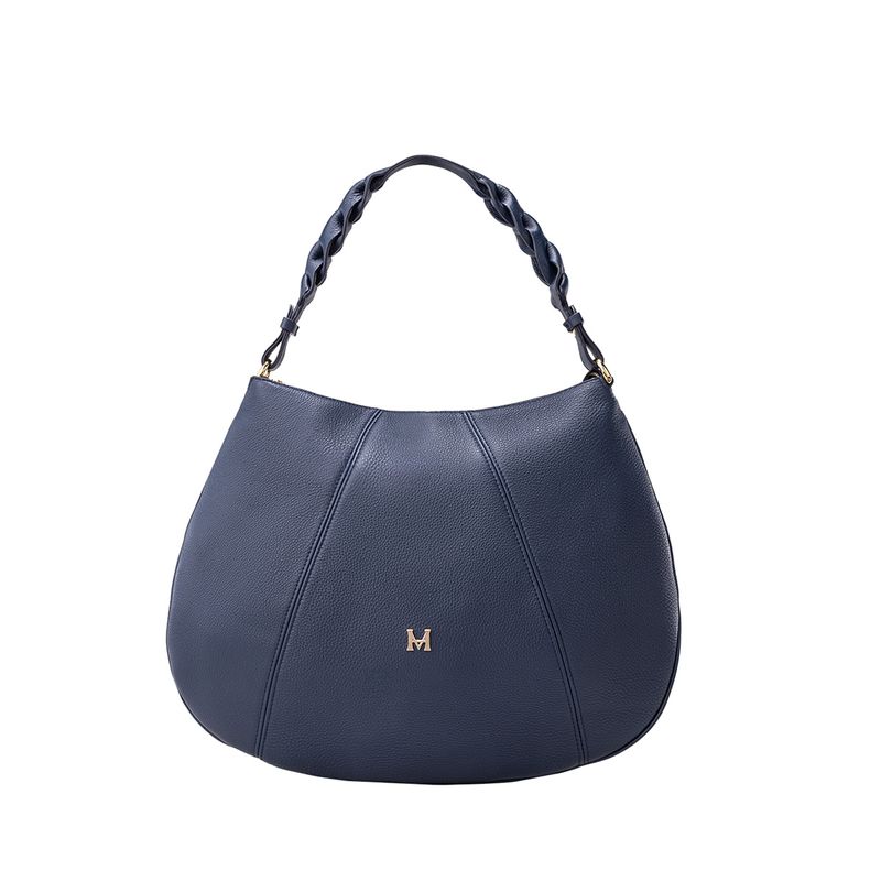 Este bolso hobo en cuero bovino destaca por su diseño trenzado en tono Orión, ofreciendo una estructura flexible y cómoda para el uso diario. Su compartimento principal amplio facilita la organización de objetos personales, mientras que el asa integrada permite llevarlo al hombro con naturalidad.