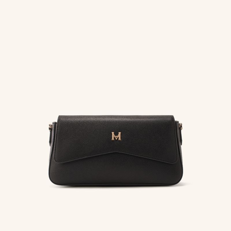 Este manos libres en cuero negro destaca por su diseño trenzado que aporta una textura distintiva y moderna. Su estructura amplia facilita el transporte de objetos personales, manteniéndolos seguros gracias a un cierre de imán práctico y discreto.