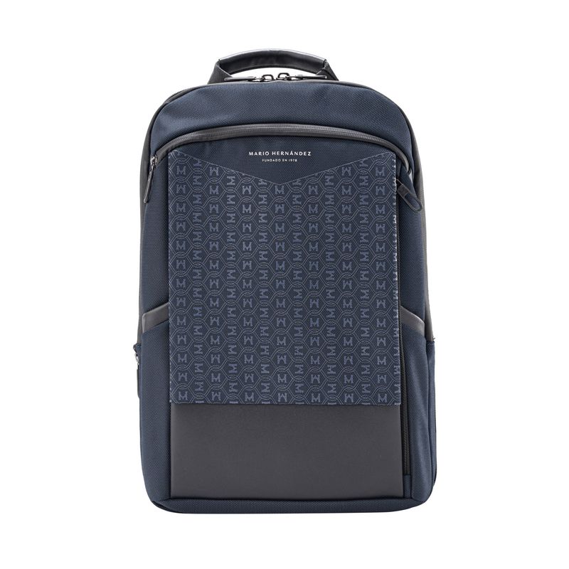 Este morral viajero en lona sintética azul combina ligereza y resistencia para el uso diario o trayectos largos. Su diseño funcional destaca por el monograma MH estampado y múltiples bolsillos exteriores que facilitan el acceso rápido a elementos esenciales, mientras que los compartimentos internos aseguran una organización eficiente de dispositivos y documentos.