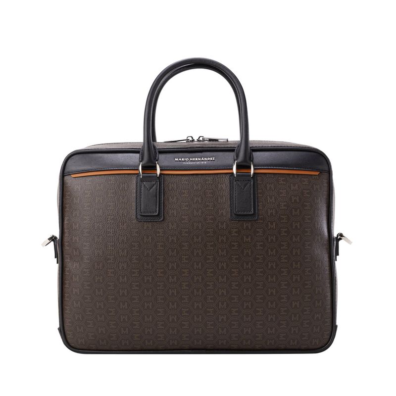 Esta propuesta, liviana y de construcción limpia, trae un patrón exclusivo MH Palenque en lona sintética texturizada, complementado con detalles en cuero vacuno liso. Su diseño funcional se adapta al ritmo de vida del hombre urbano moderno, ofreciendo comodidad y organización para sus esenciales diarios. Los herrajes en zamac con acabados en color níquel y negro níquel añaden un toque distinguido y duradero.